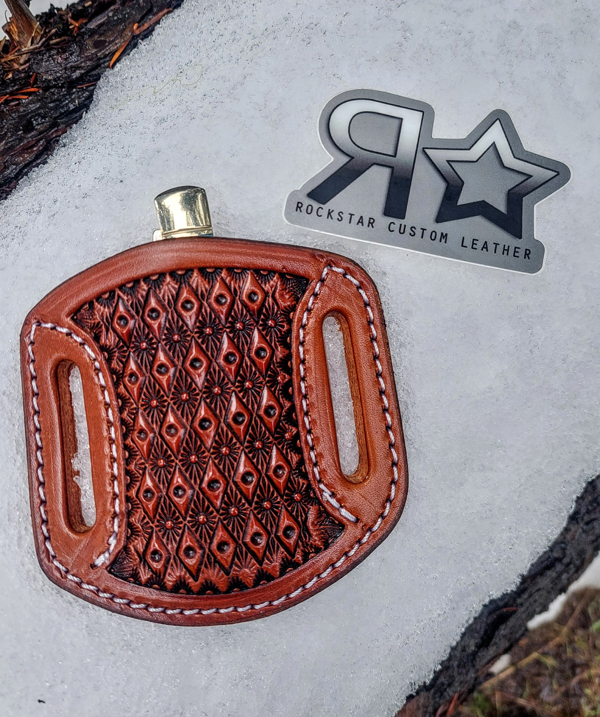 Beautifully tooled knife sheath with a Rough Ryder trapper knife included.