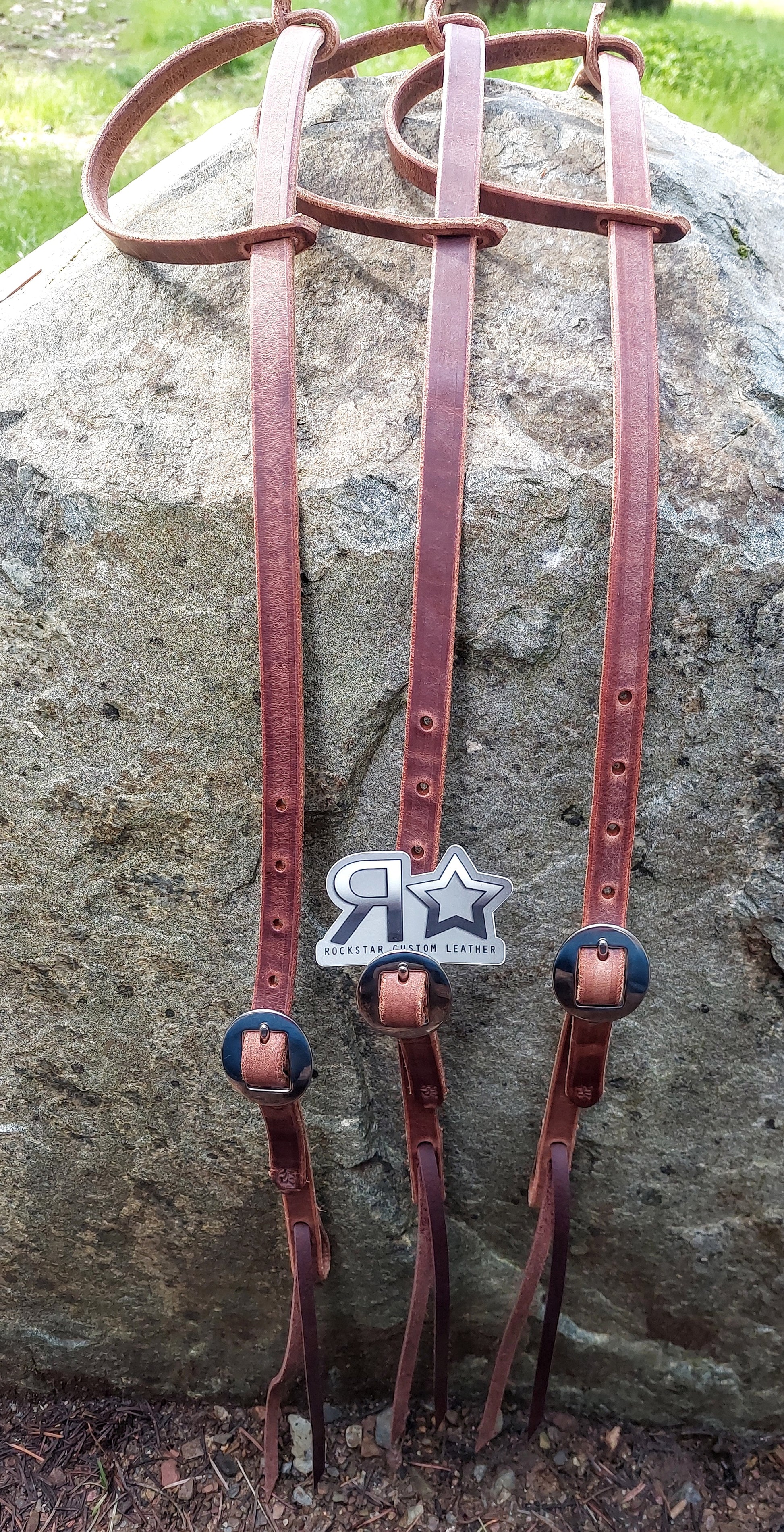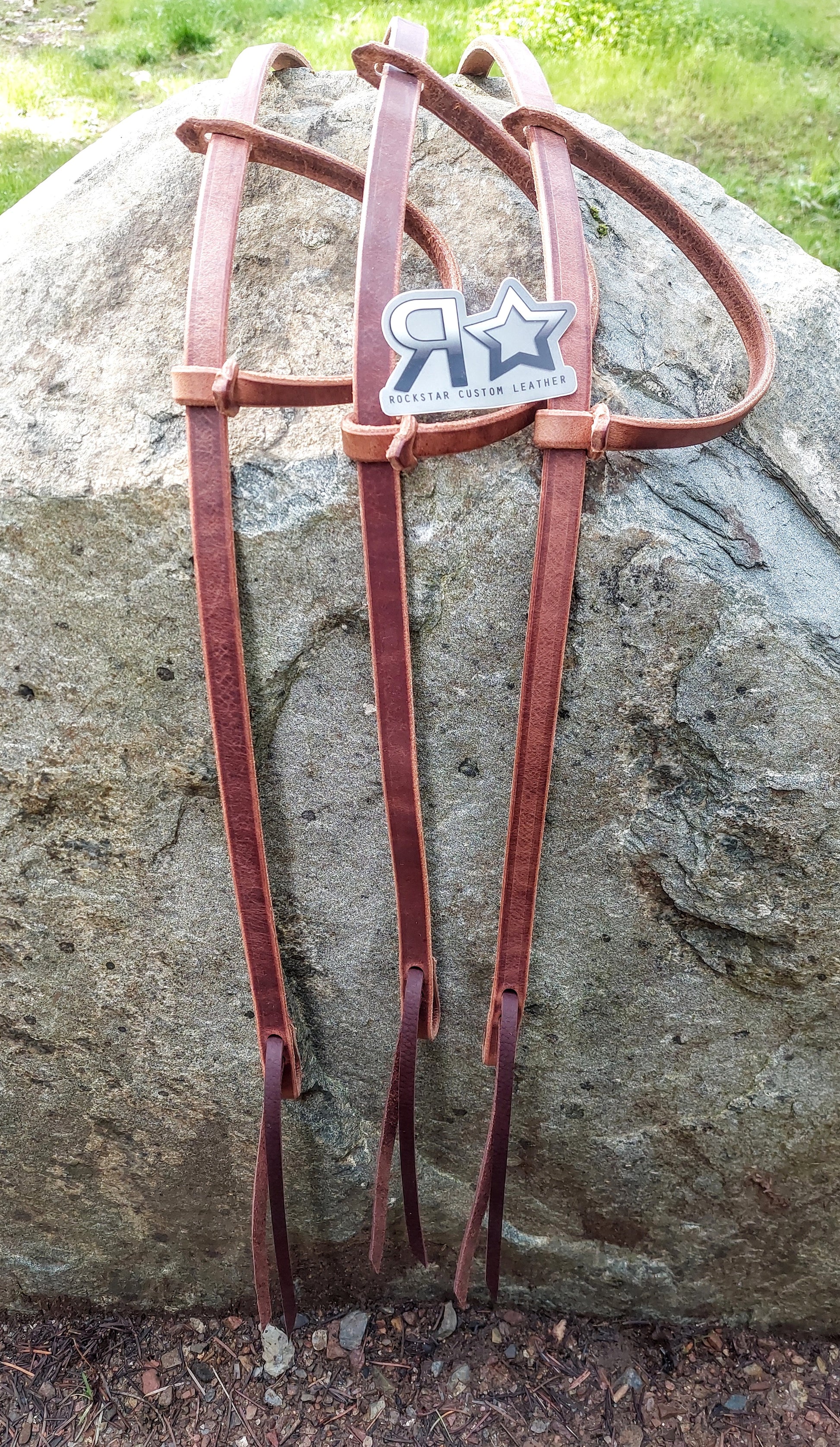 Gorgeous, buttery soft harness leather headstall. One ear. Stainless steel buckle. Perfect working headstall. 5/8" wide.