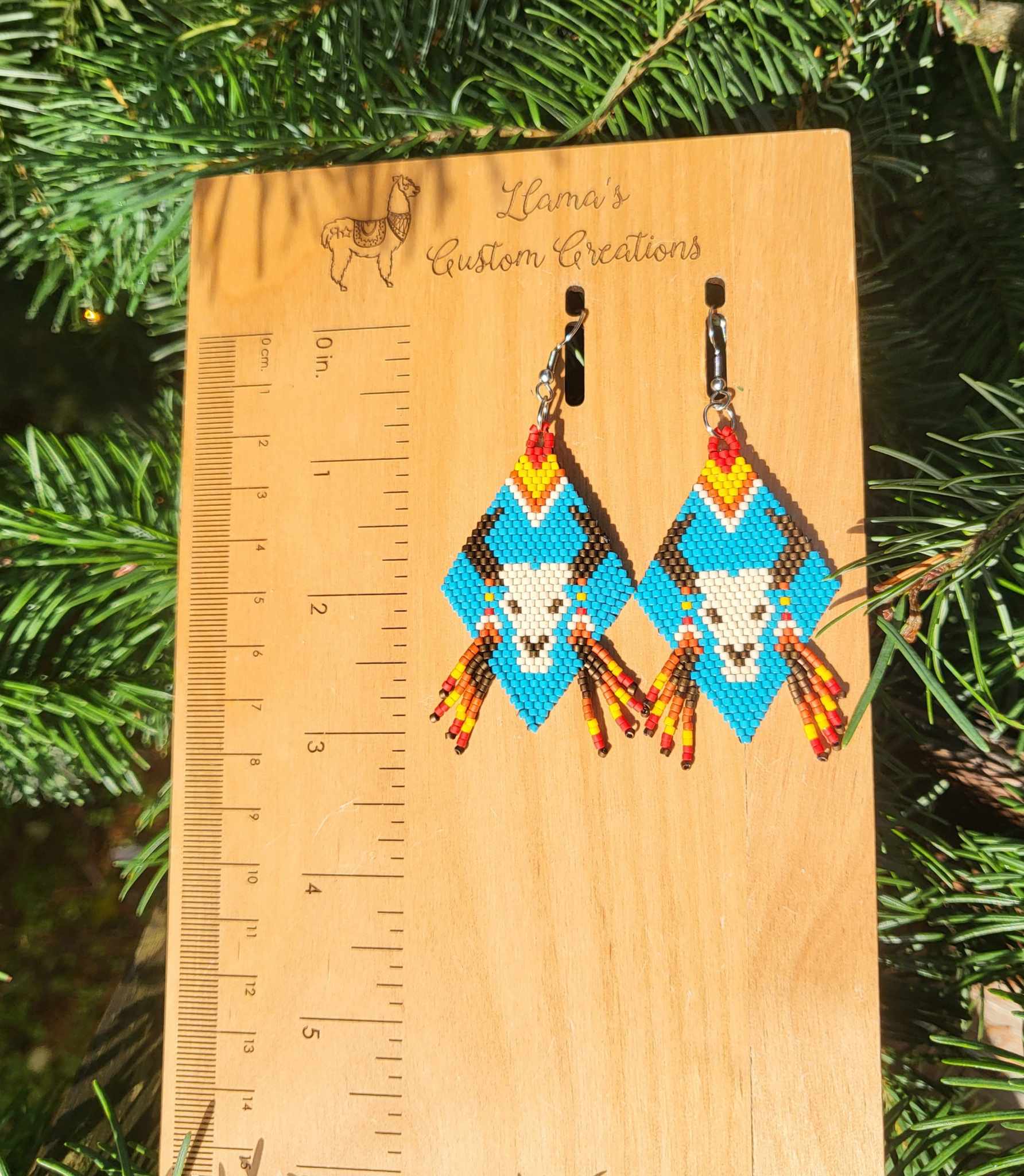 GORGEOUS steer skull turquoise earrings, hand beaded by Llamas Custom Creations