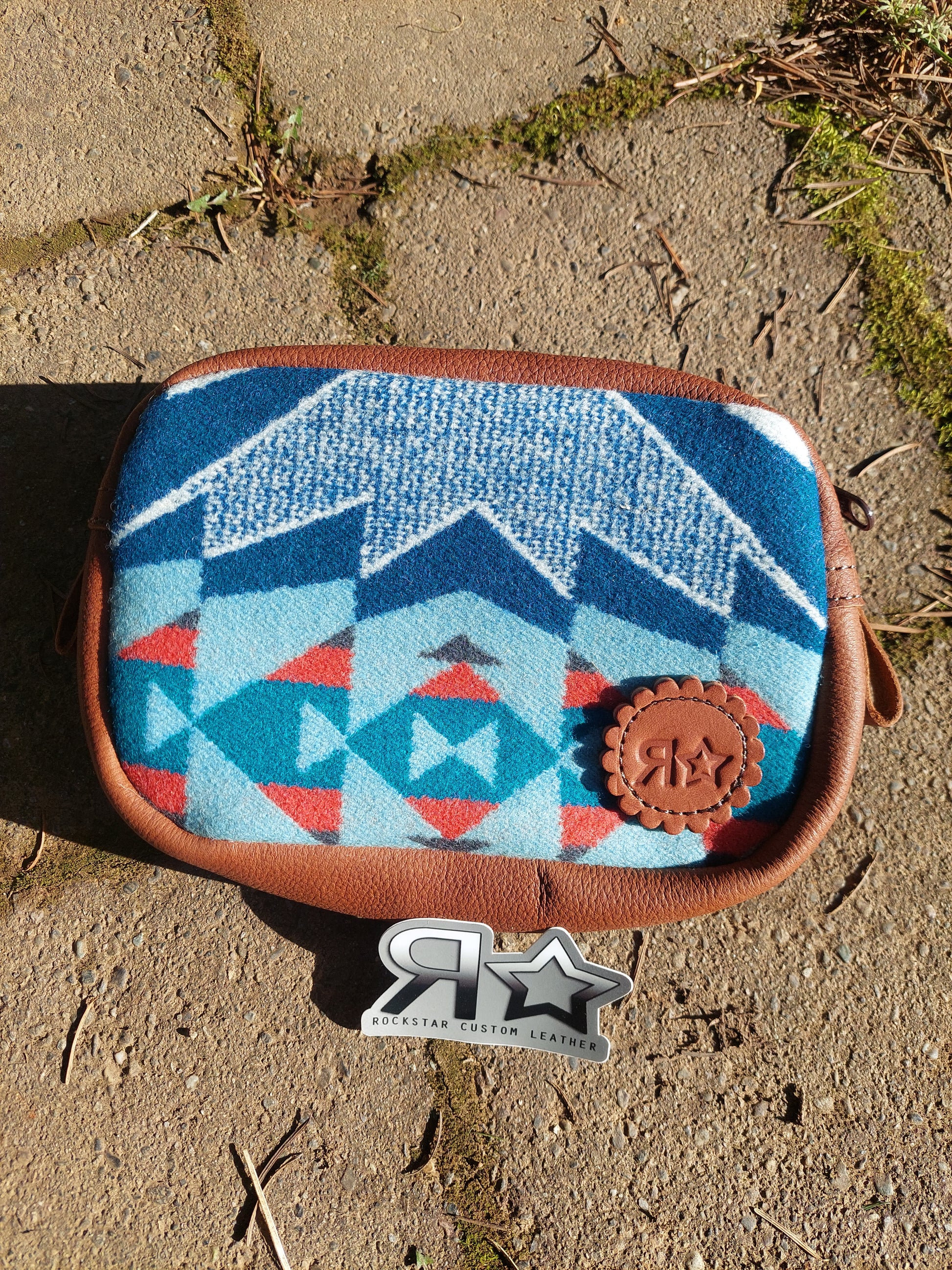 Gorgeous genuine Pendleton wool and leather saddle pommel bag. These are made to attach around the pommel of your saddle (under the horn). Keep your phone, snacks, cash, etc handy and easily accessible while you ride! Approximate dimensions are 8"x6"x1"