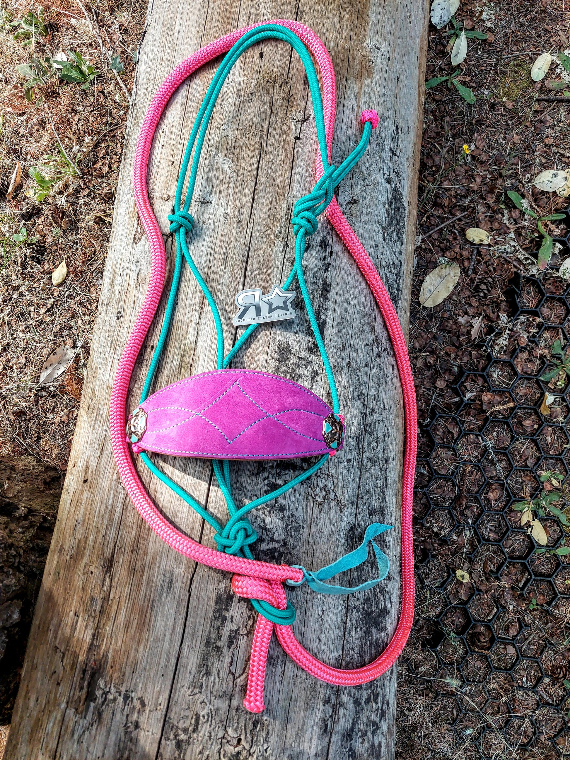 Pink and Turquoise Bronc Noseband Rope Halter